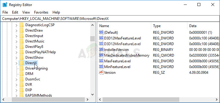 HKEY_LOCAL_MACHINE\Software\Microsoft\DirectX