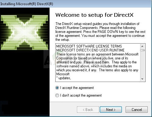 The process differs from one operating system to another and users have reported that Windows 10 users can simply reboot their PCs instead of reinstalling DirectX. Other versions may follow the steps below: