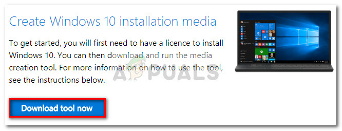 If upgrading with the Windows 10 Upgrader App is simply not doable, you might have better luck by using the Media Creation Tool. Some users that have struggled with the “api-ms-win-core-libraryloader-l1-1-1.dll is missing from your computer” error even after following Method 1 have finally managed to upgrade after using the Media Creation Tool.