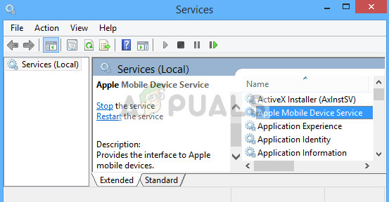 The Apple driver mechanism is run by a service on Windows which manages the module and make sure that all the operations with your Apple device are run properly without any problems. It provides an interface to Apple mobile devices. If the service is causing problems, we can try to restart it and check if this makes any difference.
