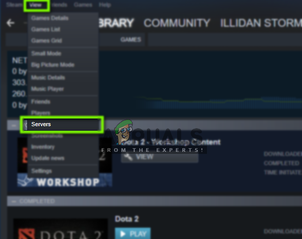 - Launch Steam and click on View. Now select Servers from the drop-down menu.