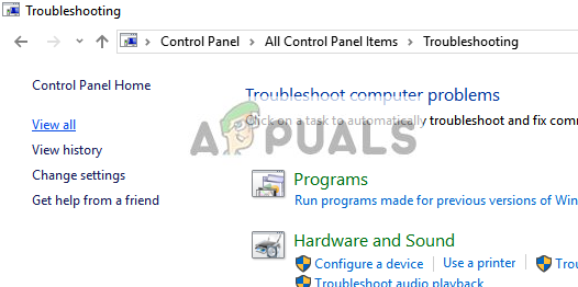Troubleshooting – Control Panel - Now on the left side of the window, select the “View all” option to list all the troubleshooting packs available on your computer.