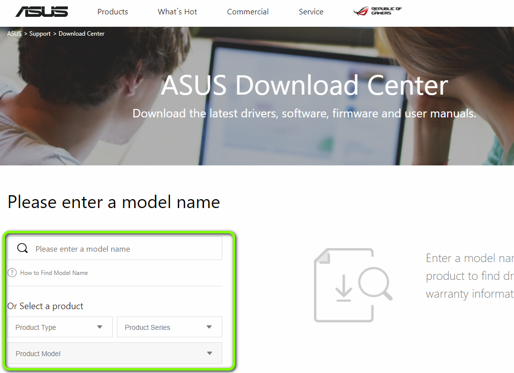 - Navigate to the official ASUS Download. Enter your product details and specification here.