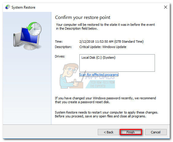 If all the methods above have failed, consider using a System Restore point from back when you weren’t bothered by this Audio Enhancements Problem prompt. Keep in mind that this method might not be applicable if the recovery tool doesn’t have a restore point that is old enough.