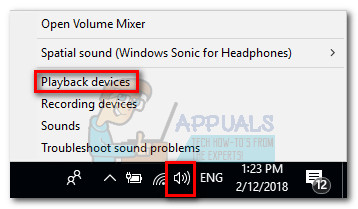 - Right-click on the sound icon (bottom-right corner) and choose Playback Devices.