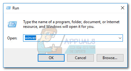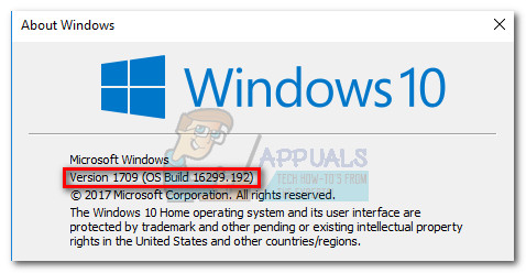Fortunately, this particular bug was addressed by Microsoft with the Fall Creators Update (build 1709). Let’s start our troubleshooting quest by making sure this particular bug is fixed. Check if you have the Fall Creators Update by opening a Run window (Windows key + R), typing “winver” and hitting Enter.