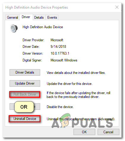 Another possible fix for the “Audio renderer error. Please restart your computer.” error is to roll back on the audio driver. Rolling back to a previous audio version will resolve the issue if it was previously caused by a software bug. Uninstalling the audio driver will also force Windows to reinstall the audio driver which will eliminate the error if you were dealing with some corrupted files.