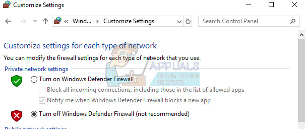 Solution 3: Turn off Windows Firewall