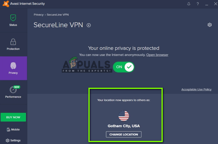 AVG SecureLine offers a feature where you can specifically select the VPN location. This can be the United States or Australia etc. Several cases came to light where specific VPN locations were either overloaded or not working. This is a very common scenario as most of the people using the application tend to select the same location. Here in this solution, you can try changing the VPN location and see if it does the trick for you.