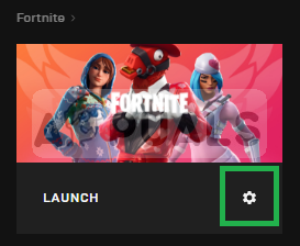 - Click on the “gear icon” by the “Launch” option in the Fortnite tab.