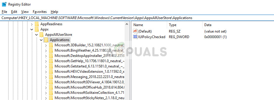 HKEY_LOCAL_MACHINE\SOFTWARE\Microsoft\Windows\CurrentVersion\Appx\AppxAllUserStore\Applications