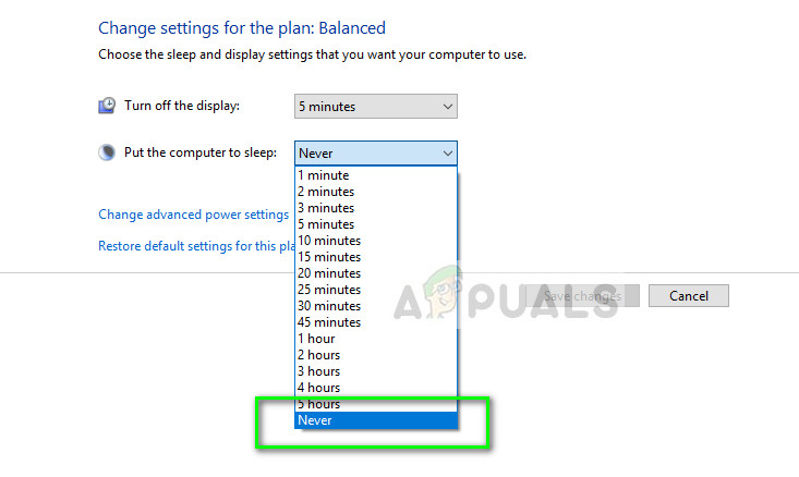 If even this doesn’t solve the problem, we can go to the root cause and disable your computer’s sleep function permanently. This means that your computer will not sleep automatically or even when you close the lid. Disabling sleep might serve as a ‘workaround’ for the problem but it isn’t a proper solution. Feel free to try the other methods before coming back to this.