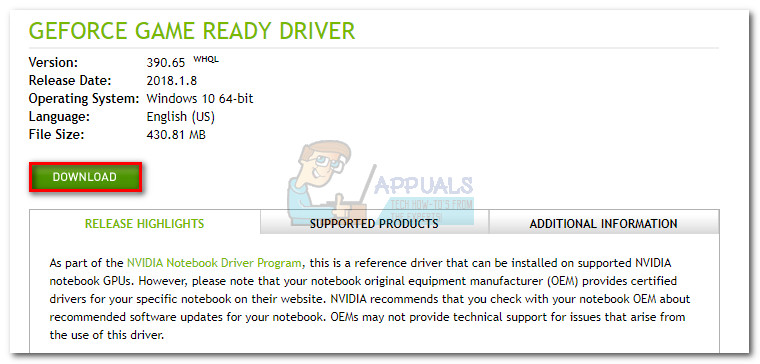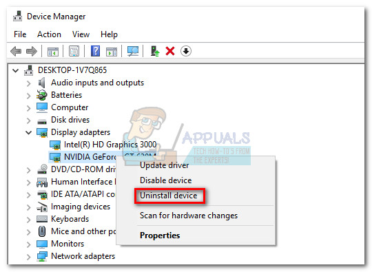 Note: You might see two different entries under Display Adapters. This usually occurs with laptops and notebooks that have both an integrated and a dedicated graphics card. In this case, uninstall both display adapter drivers. - Download the latest dedicated graphics driver version from your manufacturer’s website. To do this, visit this link (here) for Nvidia or this (here) for ATI. Download & install the latest driver version according to your GPU model and Windows version.