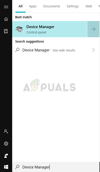 Clicking on Start Menu - Search For Device Manager