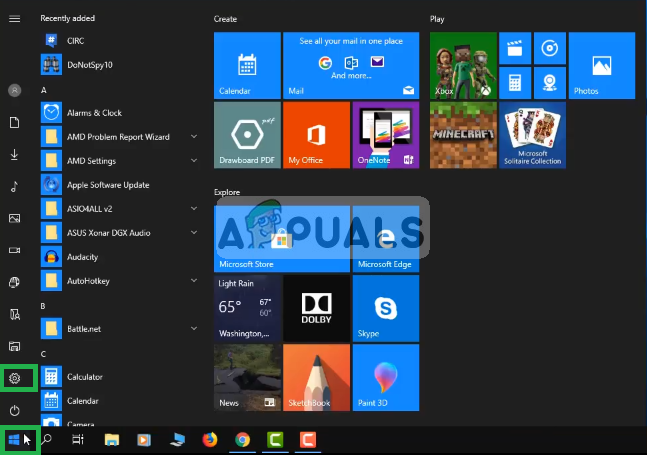 - Click ON the Start Menu and Click on the Settings icon
