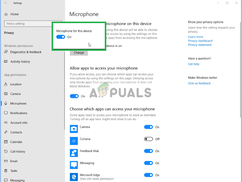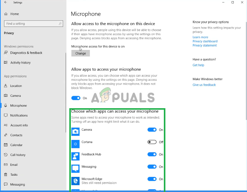 Changing Microphone Privacy Settings - Then Make Sure it is Enabled