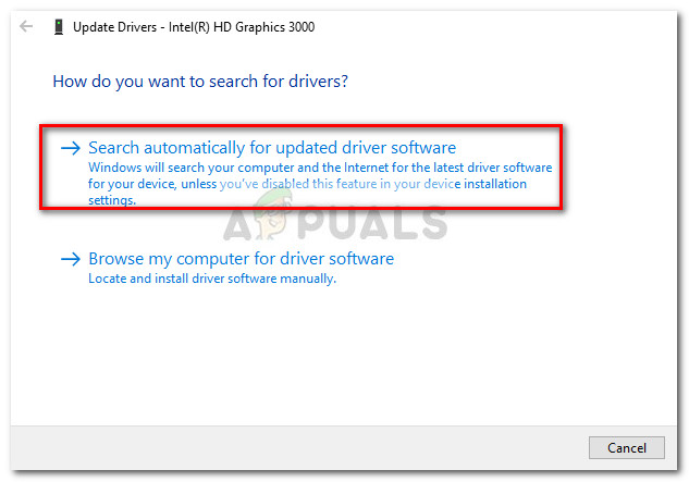 - In the next screen, click on Search automatically for updated driver software and let WU install the latest version available.