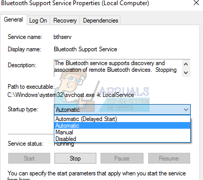 Before we uninstall the drivers of your Bluetooth hardware, we can try restarting the service and setting its startup type as automatic. It is actually the Bluetooth service which is responsible for running the Bluetooth drivers installed on your computer. By restarting the service, we will reset every configuration. Furthermore, setting the startup type as “Automatic” will make sure that the Bluetooth service starts up without any intervention.