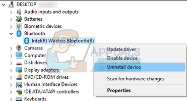 - Once in the device manager, expand the category of “Bluetooth”. Your Bluetooth hardware will be listed here. Right-click on it and select “Uninstall”.