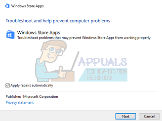 It is worth a shot running the Windows Store troubleshooter. Windows has an inbuilt collection of troubleshooters meant to troubleshoot problems in various categories. They will automatically detect and fix the problems (if any). We can try running the troubleshooter and check if it detects any problems and fixes them.