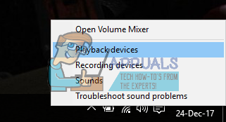 - Right-click on the speaker icon on your taskbar and select “Playback devices”.