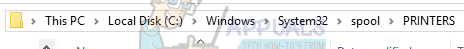 - Once in the folder, delete all the files in the PRINTERS folder and close the window.