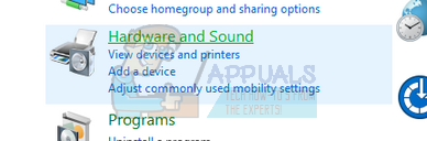 - Select “Hardware and Sound” from the list of sub-categories available.