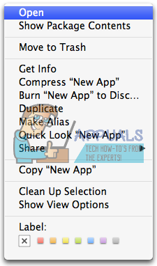 - Press and hold the Control key and left–click on the app icon. Now, select Open from the contextual menu.