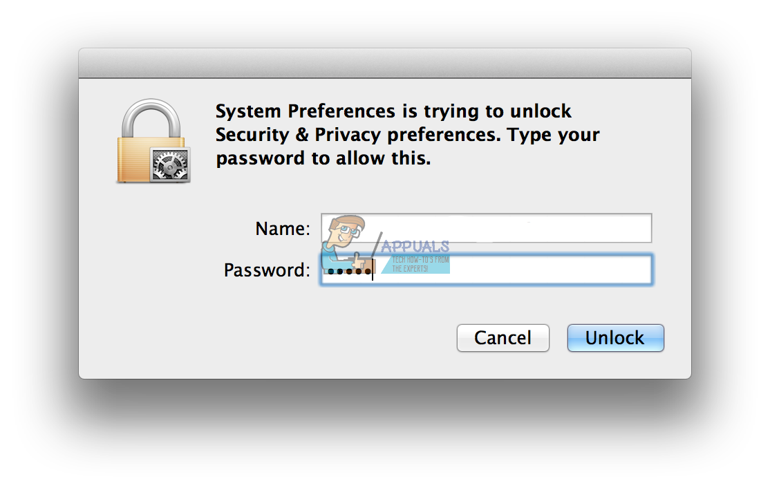 - Type your username and password and click on Unlock. This will allow you to edit the options in this window.