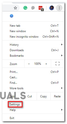 - Open Google Chrome and click the action button (top-right) corner and click on Settings.