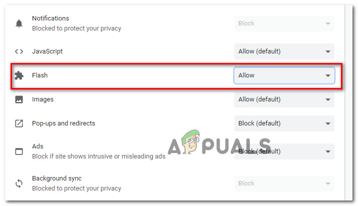 Note: Keep in mind that even if this method managed to resolve the issue, it’s likely to return the next time you restart your browser. You’ll then need to repeat the steps above all over again. This happens because the latest Chrome versions no longer save Flash preferences – This is part of Google’s plan of moving away from Flash.