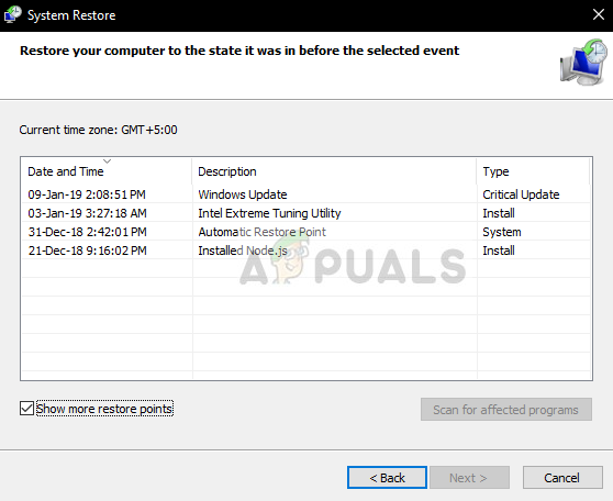 To remedy this, you can perform a system restore and choose a recent restore point. Make sure that you select a recent restore point which was taken the latest and then work your way outwards.