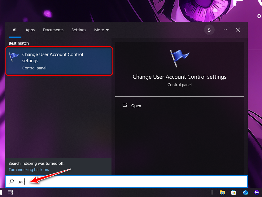 - Press Windows + S and type UAC.