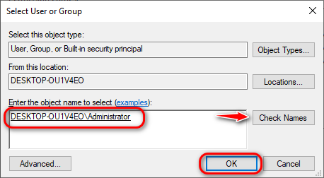 - Type your Username and click on check Names (if correct, it will underline).