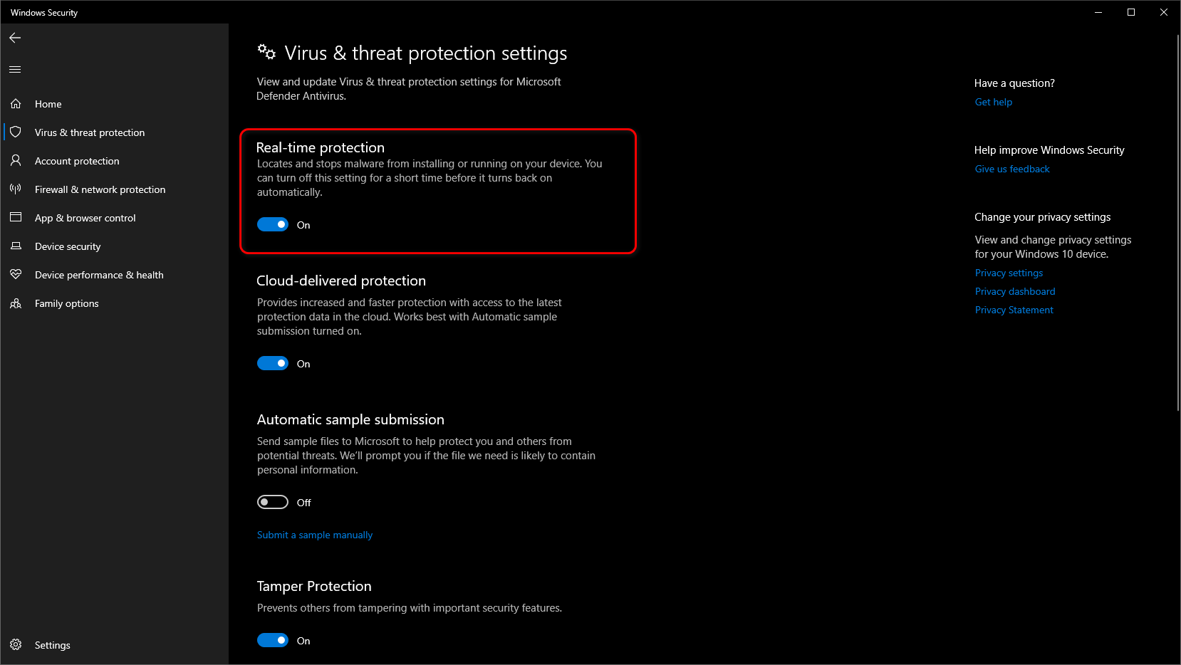 Windows has a built-in antivirus program called Microsoft Defender Antivirus. If you’re using an alternative, find a similar option in its settings. - Look for an option to temporarily disable Real-time protection (usually found in the settings or system tray).