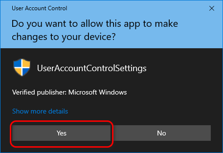 - A User Account Control prompt will appear. Click on Yes.