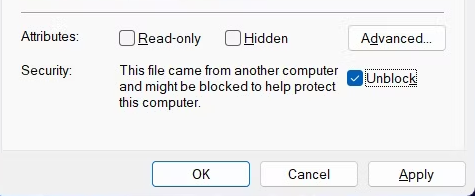If you don’t see the Unblock option, the file might not be blocked, or it might not be a file that Windows flags for security reasons.