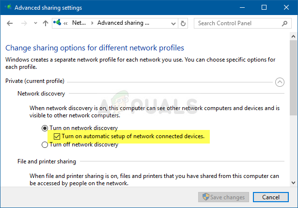 - Click on Advanced sharing settings and, in your current network profile, look for the Turn on Automatic Setup of Network Connected Devices options and uncheck the box next to it.