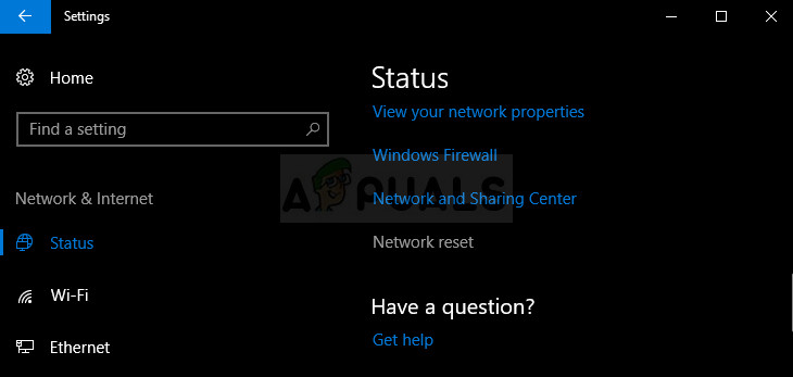 - Click on the Network & Internet section in the Settings window and switch to the Status section.