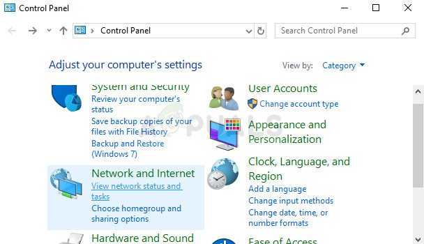 - Change the view in Control Panel to Category and click on View network status and tasks under the Network and Internet section.