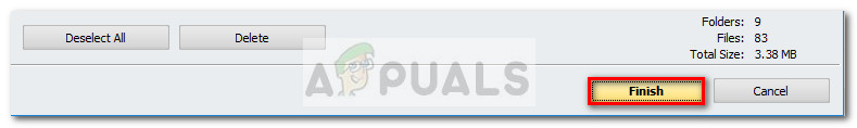 - Next, for the leftover files, repeat the same procedure. Once all leftover files have been selected and deleted, hit the Finish button to complete the uninstallation.