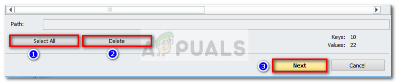 - Wait until the registry scan is complete, then click on Select all, then Delete and Yes at the prompt to delete all occurrences of Google Chrome. Once all keys related to Google Chrome are deleted, hit the Next button.