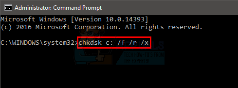 Running the chkdsk <drive letter:> / f / r / x usually resolves the issue for a lot of users. If you are seeing the error on running this command then you should skip this method.