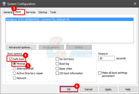 - Select the option Minimal under the Safe Boot option