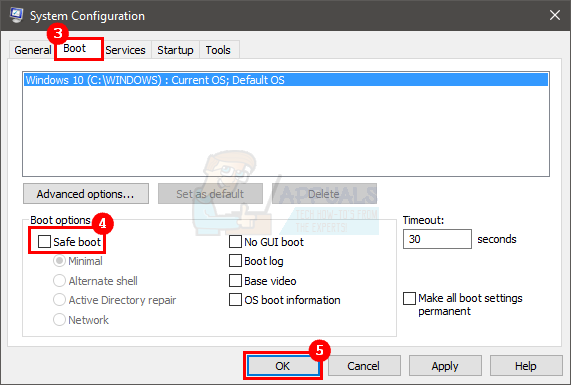 - Uncheck the option Safe Boot in the Boot options section