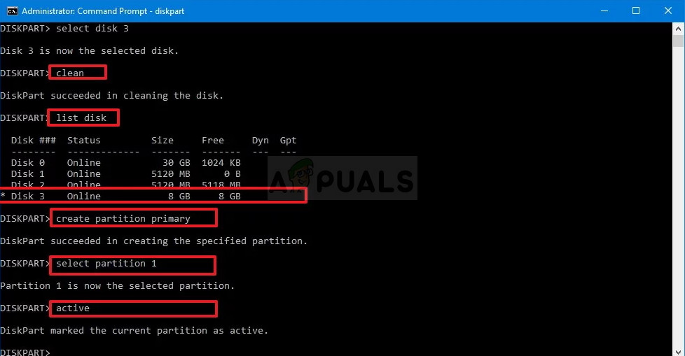 - In order to clean this volume, all you need to do is to type in the command displayed below, click the Enter key afterwards, and stay patient for the process to complete. The process should now be successful for a change. This set of commands will also create a Primary Partition and make it active so that you can format it without problems.