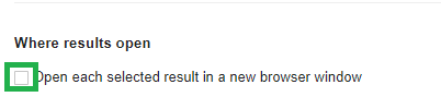 Search Settings - In the settings option, Scroll down and make sure the “Open New Window for each result” Box is unchecked.