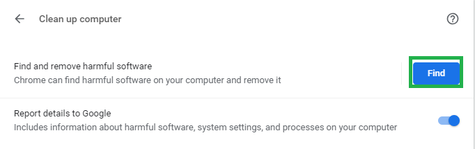 Clicking on the Find Harmful Software option - Chrome will automatically scan your computer for any malware related to it and automatically Remove it from your computer.