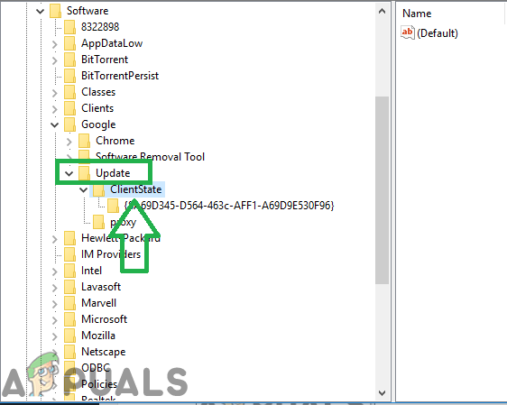Clicking on “Software” and then clicking on “Google” - Double–click on “Update” and then on “Client State“.