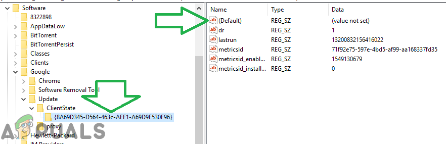 If the Registry configurations of the Chrome browser have been corrupted then this error might be seen while updating. Therefore, in this step, we will be changing the registry settings for Chrome. Before proceeding, make sure to backup your registry in case something goes wrong. For that: